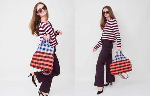1) it looks good with everything (because color) 2) it carries a lot of stuff 3) it makes us smilerules schmules