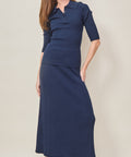Soft yet substantial, the Afiya skirt hugs gently at the hips and flares at the hem. Slim fit, soft and structured. Runs true to size. 68% Lenzing Lyocell, 26% cotton, 6% silk. Hand wash, lay flat to dry. Lindsay is 5'6" and wearing the XS.