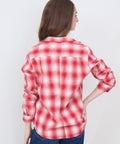 Barry is that classic shirt, but nipped and tucked in all the right places for a feminine fit.  This one is in a super soft Italian flannel. Barry runs a tad small.  If you often wear Eileen, consider choosing a size up from your normal Eileen sizing. 100% cotton, machine washable.  Lindsay is 5'6" and wearing the small.