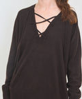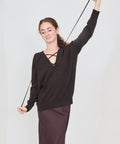 A feminine silhouette from Lisa Yang, this sweater is crafted in a mid-weight cashmere for seasonless wear. The relaxed fit silhouette features a deep v-neck with ties, dropped shoulders and ribbed trim throughout. 100% cashmere, 210g, 12 gauge. Designed in Stockholm, crafted in Inner Mongolia. Hand wash or dry clean. 0=XS 1=small/medium 2=medium/large. Designed for a roomy fit, Lindsay is 5'6" and wearing the size 0.
