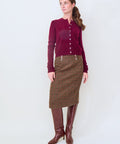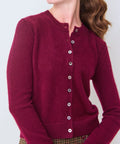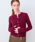 Luxurious cashmere cardigan from Brazeau Tricot in a beloved seasonal color. Crew neckline, button front and ribbed trim round out the classic detailing. Slightly shrunken fit. Fine gauge knit. 80% cashmere, 10% nylon, 2% spandex. Hand wash, lay flat to dry. 2=Small 3=Medium. Runs small. Lindsay is 5'6" and wearing the size 2.
