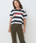 ASKK's classic oversized boy tee in a new shrunken version. Still soft AF, but with a cropped, boxy fit and cheeky graphic. What's not to love about black and white and red (all-over). 100% cotton. Wash in cold, tumble dry low. Designed for a boxy fit. Jenna is 5'8" and wearing the XS.