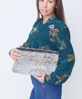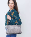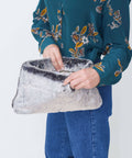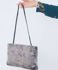 Joan is a elegant handbag from Marian Paquette, a brand that marries handmade craftsmanship with timeless design. The luxurious faux fur body and leather strap create a stunning textile play. Magnetic closure with contrast lining. Measures 9”L x 8.5”H x 1.5”W. Strap has a 10" drop. Made in the USA.