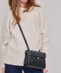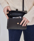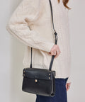Vintage-inspired, camera bag style from brother-sister owned & run brand, Herbert Frere Soeur. Full-grain vegetable tanned leather with magnetic snap closure and contrast stitching. Gold stud detailing on the top adds allure. Measures approximately 7" x 6.2" x 3.14". Adjustable crossbody strap.