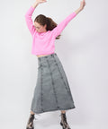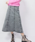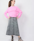 Seamed skirt from Baum und Pferdgarten. Crafted in a washed black denim, this a-line skirt features vertical panels that give it a retro vibe. Belt loops and side zip. Made for a sweater and boot combo. 97% Organic Cotton, 3% Elastane. Machine wash cold, do not tumble dry. 34=XS 36=Small 38=Medium 40=Large. Lindsay is 5'6" and wearing the 32. Jenna is 5'8" and wearing the 34.