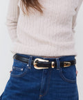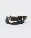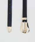 Déhanche's new Colette belt softens the traditional western silhouette into a sculptural, minimalist piece.  The belt is 1" wide made with leather sourced from the Leather Working Group.  14K gold plated hardware.  Made in Italy.