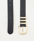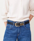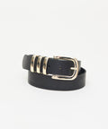 Sleek leather belt with triple buckle detail from family owned French brand Herbert Frere Soeur. 1.25" width and gold hardware. Sizes roughly translate as follows: 75=xsmall, 80=small, 85=medium, 90=large.