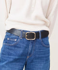 A reversible leather belt with a minimalist buckle for ultimate versatility. We expect nothing less from one of our favorite leather goods brands, French brother and sister team, Herbert Frere Soeur. 80mm width. Sizes roughly translate as follows: 75=xsmall, 80=small, 85=medium, 90=large.
