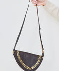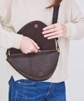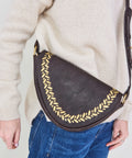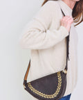 This chic saddle bag gets a classic Calleen Corder update with her signature metal art adoring this beautiful leather bag. The adjustable strap can be worn over the shoulder or as a short crossbody. Flap closure, suede-lied interior and interior pocket. Dimensions: