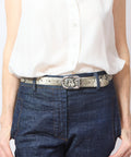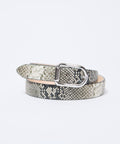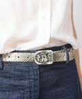 An elevated essential, the Mija belt by Déhanche is crafted in responsibly sourced embossed snakeskin leather, defined by a sculpted silhouette and polished silver-tone buckle. Handcrafted in Italy, its lightweight 1" design and suede lining balance everyday ease with refined elegance.