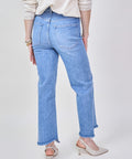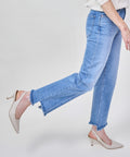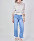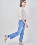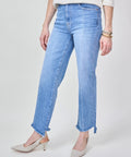 Cue the Backstreet Boys in this straight leg denim with a vintage silhouette from Le Jean. High waist and ankle length with a raw, asymmetrical hem add versatility to this endlessly wearable style that also features a front stitched seam. You'll be back to being the cool girl once again. 11.5" rise, 27" inseam, 16" leg opening. 98% cotton, 2% elastane. Machine wash cold. Made in Los Angeles. Margot is 5'4" and wearing the 25.
