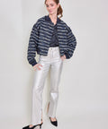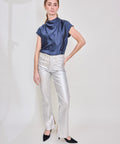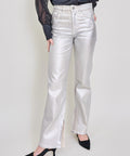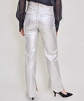 Cue the Backstreet Boys in this straight leg denim with a groovy silver finish from Le Jean. High waist, full length and classic hem add versatility to this endlessly wearable style with a vintage silhouette. Interior slit at the ankle adds an additional pop of interest. You'll be back to being the cool girl once again. 11.5" rise, 31" inseam, 17" leg opening. 98% cotton, 2% elastane. Machine wash cold. Made in Los Angeles. Lindsay is 5'6" and wearing the size 25.