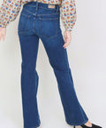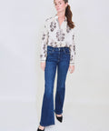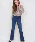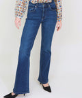 A long lean denim style with traditional 5-pocket styling in a beautiful medium blue, made of Le Jean's signature soft and stretchy denim. The Baby Bootcut is full length with a subtle boot shape toward the bottom of the leg. Enigmatically referred to as a mid/high-rise by the brand, it's a great fit through the hips and waist and comes up to 10.5". 10.5" rise, 32" inseam. 93% cotton, 5% polyester, 2% spandex. Machine wash cold, inside out . Tumble dry low, removing from the dryer promptly. This style runs small compared to other sizes by Le Jean. If in doubt, size up. Lindsay is 5'6" and wearing the 25.