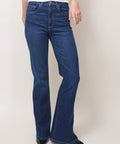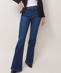 Legs for days in this super soft, lightweight denim from Le Jean. High waist and full length with flared shape help elongate your silhouette. All-day comfort with a luxe feel and a dressy dark wash. 11.5" rise, 32" inseam, 23" leg opening. 98% cotton, 2% elastane. Machine wash cold. Made in Los Angeles. Lindsay is 5'6" and wearing the 25.