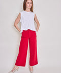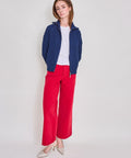 A modern wide-leg jean from Le Jean is sure to be a go-to given its super soft and comfy construction, not to mention its festive color. High rise, fitted through the hip and an ankle length. Wear it with some cute little Mary Janes or an ankle boot. 11.5" front rise, 27" inseam. 22" leg opening. 98% cotton, 2% elastane. Machine wash cold, tumble dry low or line dry. Runs true to size. Lindsay is 5'6' and wearing the 25.