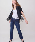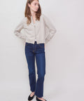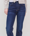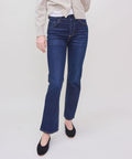 Timeless straight jean from ASKK designed with a mid rise and slim leg. Clean and versatile fit with just the right amount of give for comfort and ease of movement. Subtle fading and classic five-pocket styling make this a true everyday essential. 98% cotton/ 2% pu. Machine wash cold, do not tumble dry. Made in Los Angeles. Rise: 10.5", Inseam: 28", Leg Opening: 14". Lindsay is 5'6" and wearing a size 25.