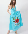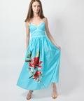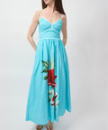 Sunshine in a dress! This Christy Lynn dress is made for twirling, with a breezy, full skirt and a flattering fitted bodice that shows just the right amount of skin. The vibrant aqua hue pops, while delicate straps, contrast trim, and a smocked back keep things comfy and charming. Finished with a bold floral accent, it’s the kind of dress that turns errands into events and weekends into mini vacations. 100% cotton with cotton lining. Hand wash cold/lay flat to dry or dry clean. Lindsay is 5'6' and wearing the XS.