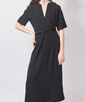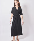 This Meimeij midi dress nails modern minimalism with a clean V-neck, relaxed sleeves, and a clever front knot that does all the flattering work for you. Polished, unfussy, and ready for whatever your day throws at it.