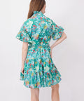 Ideal for the spring ahead or a get-away. This Mille cotton dress brings the fun with its vibrant floral print, flutter sleeves, and easy, flattering shape. Lightweight and breathable, it’s made for sunny days, spontaneous plans, and effortless style. Finished with a self-tie waist for a just-right fit—and yes, it has pockets (because obviously). 100% cotton.  Dry cleaning recommended. Lindsay is 5'6" and wearing the XS.