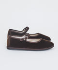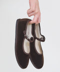Classic handmade velvet Mary Jane slippers with a rubber sole.  Whole sizes only and some people find these run small.  Consider sizing up.
