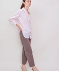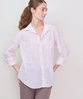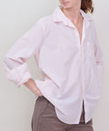 Every gal needs a friend like Eileen: she's relaxed and always makes you feel comfortable. She can be tucked, tied or tossed on. Made in a super soft cotton. This style is Frank & Eileen's most generous cut. A slight a-line shape with a generous fit. 100% cotton. Machine wash cold, tumble dry low. Lindsay is 5'6" and wearing an XS.
