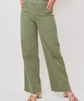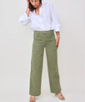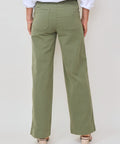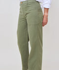 Frank and Eileen's version of a utility pant in an Italian peached twill. Full length with a wide-leg, the details are dialed up with flattering patch pockets that wrap smoothly around your leg. Horn button and zip closure with finished hem. Back welt pockets. The medium weight fabric feels like a lightly textured peach and is made exclusively for Frank and Eileen. Inseam: 31”, front rise: 10.5", leg opening: 21". 97% cotton, 3% elastane. Machine wash cold, tumble dry low. Jenna is 5'8" and wearing the size 4.