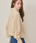 Cool cotton to live in, the Lauren sweater has a funnel neck with a cool raglan shoulder construction.  Made in a smooth cotton with a plump rib stitch, it's a chic & cozy update to a classic.  Designed for a roomy, cozy fit.  Hand wash cold, lay flat to dry.  100% cotton.  Lindsay is 5'6" and wearing the XS.