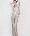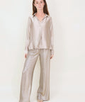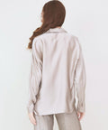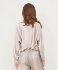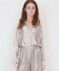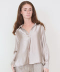 Effortless and minimalist from Go Silk. The Ease Up top is long sleeve with a collar and continuous sleeve with a button cuff. Effortless, modern and a little luxurious. Made of a washed silk charmeuse.