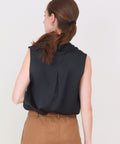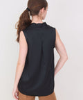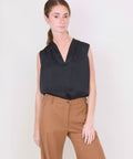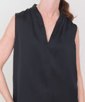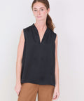 Simple and elegant, a sleeveless shell from Go Silk made in a rich hammered silk charmeuse. It has a narrow v-neck and a sleek pleat at the shoulders that adds some fabric to the body that makes it easy and effortless to wear. Perfect worn on its own or layered