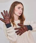 A zingy take on a classic glove from Hestra. Knit body and leather panels along the top and the palm create a comfortable and stylish mix of textures. Sizing translates as 7=medium, 8=large
