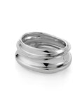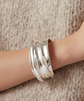 A deeply contoured statement bracelet from none other than Jenny Bird. This beefy bracelet opens and closes with a hinge and tab lock closure, finished in high polish silver. Interior circumferences measures 7.13" Inner diameter measures 2" across and 2.48" wide. Weighs 4.88 oz.