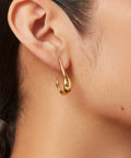 A less dramatic version of the popular Colette hoop from Jenny Bird.  Made of 14k gold dipped brass on a post with a flat disc back.  Measures approximately 0.75" long.  Light as can be and suitable for daily wear.