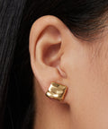 A small stud earring designed to emulate sand dunes shaped by the wind. From Jenny Bird. Made of 14k gold dipped brass with flat disc backings. Measures 0.44" x 0.48" and 0.16" deep. Single earring weighs 0.13oz.
