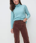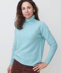 Slouchy funnel neck sweater by Kinross in a textured horizontal knit. Super soft in an unexpected color. Clean edges, slightly longer length and open bottom. 100% Cashmere. Hand wash cold, lay flat to dry or dry clean. Jenna is 5'8" and wearing the size small.
