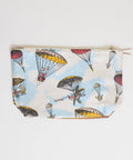 Two sided zippered pouch made of silk twill with a cotton lining. With the sort of charm and eccentricities that could only come from La Prestic Ouiston.