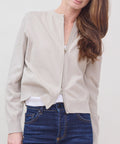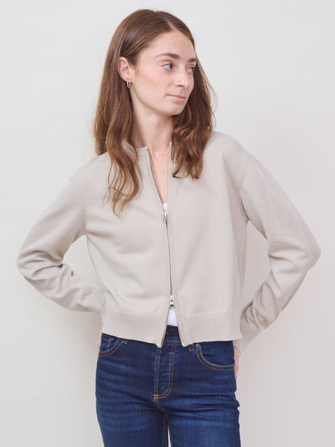 Embrace the refined sophistication of Lars Andersson's zip-up cardigan. This piece combines sustainable luxury with a sporty, contemporary design. Perfect for the modern woman, it offers both comfort and versatility with its cropped fit and double zip-up style. Ribbed trim. Wear alone or layered over a shirt or tank. 100% Organic Cotton. Machine wash cold, do not tumble dry. Made in Nepal. Lindsay is 5'6" and wearing the Small.