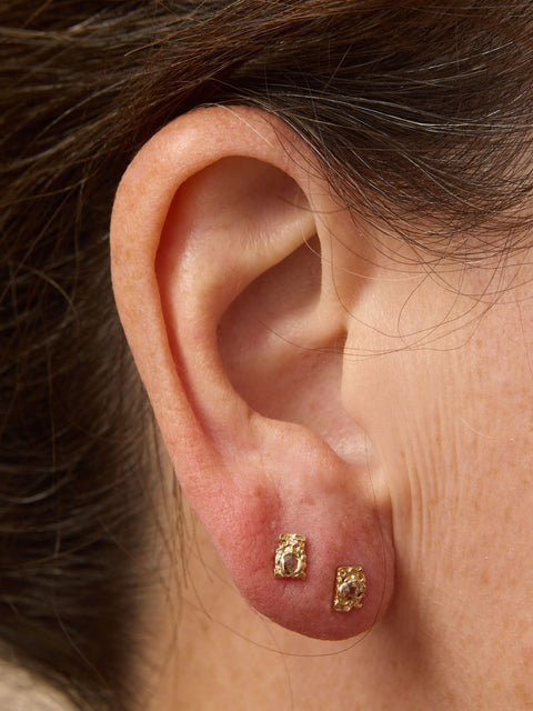 Sweet diamond studs with wabi sabi charm, these irregularly textured earrings are made in 14k gold with champagne diamonds. Perfect for a special touch to your everyday jewelry. Handcrafted in Brooklyn.