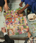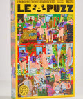 Le Puzz are unapologetically weird puzzle people, bringing the easy joy of jigsaw puzzles to our homes. Finished puzzle measures 25" x 18", box measures 14.25" x 9" x 2". This 500-piece, random-cut puzzle comes with a reusable, resealable bag, a double-sided foldout poster and a 10 page coloring book. As sensory driven people, we love the packaging - a substantial box that resembles a cereal box in the puzzles and questionnaires throughout. Every detail from Le Puzz is capital F-U-N.