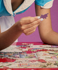 Le Puzz are unapologetically weird puzzle people, bringing the easy joy of jigsaw puzzles to our homes.  Finished puzzle measures 25" x 18", box measures 14.25" x 9" x 2".  This 500-piece, random-cut puzzle comes with a reusable, resealable bag, a double-sided foldout poster.  As sensory driven people, we love the packaging - a substantial box that resembles a cereal box in the puzzles and questionnaires throughout.  use a fine tip dry erase marker on the puzzles - you can wipe them off and reuse them for the next person to enjoy the puzzle! Every detail from Le Puzz is capital F-U-N.
