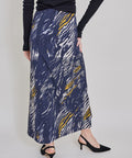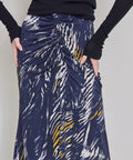 Sleek and sophisticated, this midi skirt from Maria Cher is crafted from a fluid, stretchy fabric that moves beautifully with the body. Designed with front ruching through the waist and hips for a flattering silhouette, it embodies modern elegance with ease. Pair with the Nuncia top for head to toe coordination. Elastic waistband with side zip. Lined. 88% Polyamide, 14% Elastane. Hand wash. Dry flat. Lindsay is 5'6" and wearing an XS.