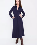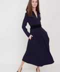 Flattering, fun, comfortable, appropriate. This dress from Meimeij checks all sorts of boxes. Long sleeved with a collar and a zip front (so you can adjust the neckline to your preference) with a flared skirt, the fabric is soft and stretchy but substantial. check fabric contents. 38=XS 40=small 42=medium 44=large. Machine wash cold/gentle, lay flat to dry. Please note it is pictured with a wrap belt from Ada Belts, which is sold separately. Lindsay is 5'6" and wearing the size 38.