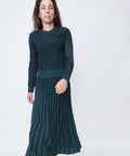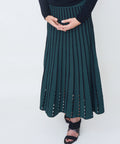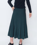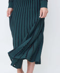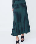 Knit skirt from Christy Lynn brings a modern edge to this pull-on style. Ankle length with a-line silhouette has texture and depth thanks to the vertical stripe design, with the added bonus of elongating the figure. Elastic waistband and fabric with a subtle stretch make this skirt comfortable as well as stylish. This piece goes casual with a chunky sweater and boots, or dressy, with the coordinating Marilyn knit top and a classic slingback. 87% Rayon, 17% Polyester. Dry clean. Jenna is 5'8" and wearing the small.