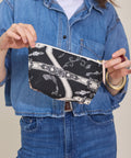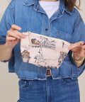 Two-sided zippered pouch made of silk twill with a cotton lining. With the sort of charm and eccentricities that could only come from La Prestic Ouiston.