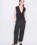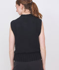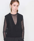A graphic vest from Lisa Yang in a heavy knit cashmere with braid elements adorning the sides. The regular fit silhouette is defined by a plunging v-neck, cropped hem and ribbed trims throughout. 100% cashmere, 220g, 5 gauge. Designed in Stockholm, crafted in Inner Mongolia. Hand wash or dry clean. 0=XS 1=small/medium 2=medium/large. Lindsay is 5'6" and wearing the size 0.