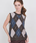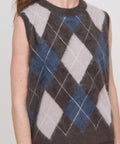 Brushed cashmere argyle vest from Lisa Yang. Cozy and chic, this crewneck vest is great layered over a crisp white shirt or lightweight turtleneck. Ribbed trim for a neat finish. 100% cashmere. Designed in Stockholm, crafted in Inner Mongolia. Dry clean. 0=XS 1=small/medium 2=medium/large. Lindsay is 5'6" and wearing the size 0.