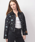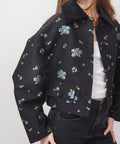 Stylish jacket from Baum und Pferdgarten made in cotton jacquard with a charming flower pattern embroidered throughout. The cropped jacket has a loose fit with dropped shoulders for a relaxed feel and features a corduroy collar and button flap pockets. Pair with the Amayah dress for a sweet yet sophisticated ensemble. Full button close. Fully lined. 59% Cotton, 41% Polyester, Lining 52% Polyester, 48% Viscose. Dry clean. 34=XS, 36=S, 38=M, 40=L. Lindsay is 5'6" and wearing a 32.