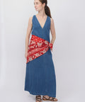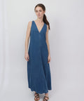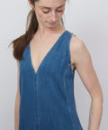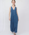 Proof that effortless can still make a statement. Deep V-neck and a clean, fluid silhouette, it drapes like a dream while keeping things cool and confident. Washed denim finish gives it edge, the relaxed fit keeps it easy, and the length does all the talking. 100% Tencell Lyocell. Hand wash, tumble dry low or dry clean. Sizes: XXS=32, XS=34, S=36, M=38, L=40, XL=42. Lindsay is 5'6" and wears an XXS.