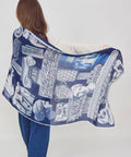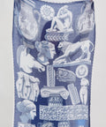 Made in collaboration with the Louvre, this scarf from Inoui Editions features exclusive drawings of artifacts at the louvre. Renderings in black and white sit on a navy background for a beautiful print that creates gorgeous texture when wrapped around your neck. Measures 80cm x 190cm and made of 100% washable wool. Machine wash cold/gentle and hang dry.