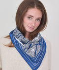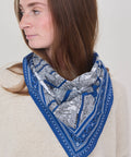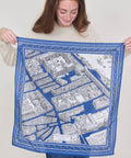 Inoui Editions put on a twist on the classic bandana (as they do), taking a cotton square bandana, a classic 65cm square with traditional paisley styling along its border. The interior illustration reflects an aerial map of the neighborhood of the Louvre. The illustration is hand drawn and depicts Paris of the past, but manages to feel current. 100% cotton. 65cm square. Machine wash gentle/cold and lay flat to dry.