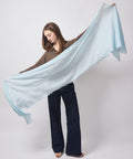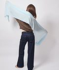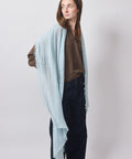 Luxurious and fine Japanese cashmere, knit on the bias on a vintage knitting machine.  These pieces are all slightly different and each is made one at a time, done by only one man!  It has raw edges and a subtle fringe along its long sides. The lightweight cashmere that can be worn any time of year by anyone, with style and ease.  These pieces are made to be wabi sabi and an absolutely quiet luxury..  Approximately 16" wide and 98" inches long.